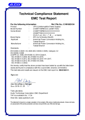 Test Report For Apc Smart Ups 750va Lcd 230v With Smartconnect Tower Rack Schneider Electric