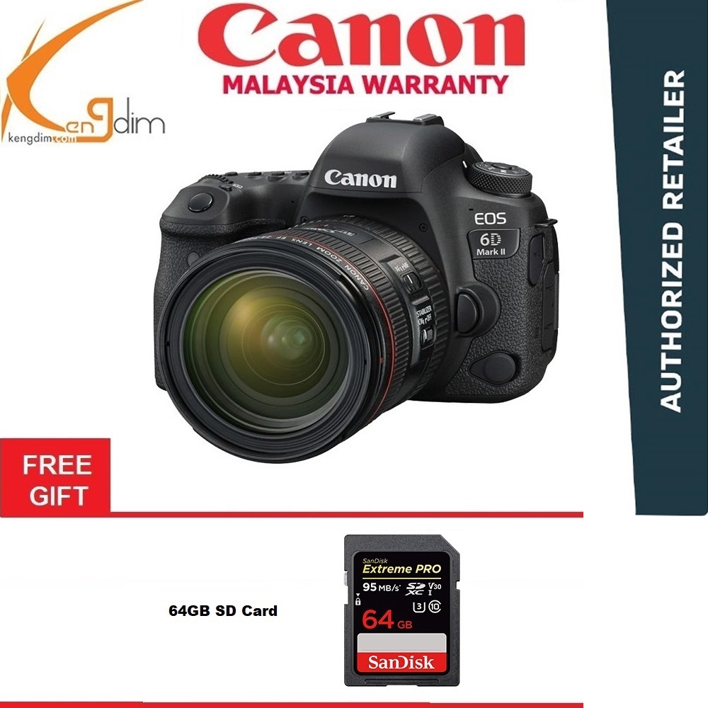 Canon Eos 6d Mark Ii Dslr Camera With 24 105mm F4l Ii Lens Canon Malaysia Free 64gb High Speed Memory Card 6dii 6d2